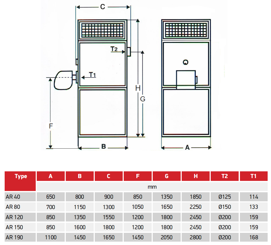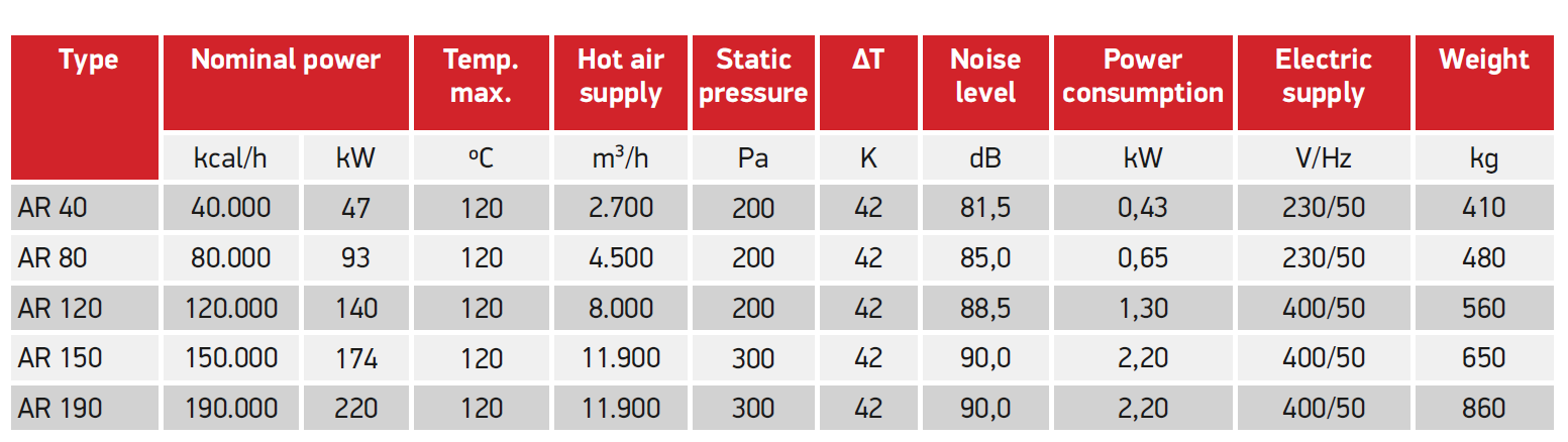 AR - Hot air generator for liquid/gaseoud fuel 47 - 220 kW